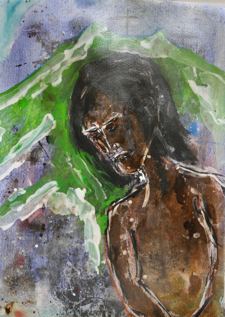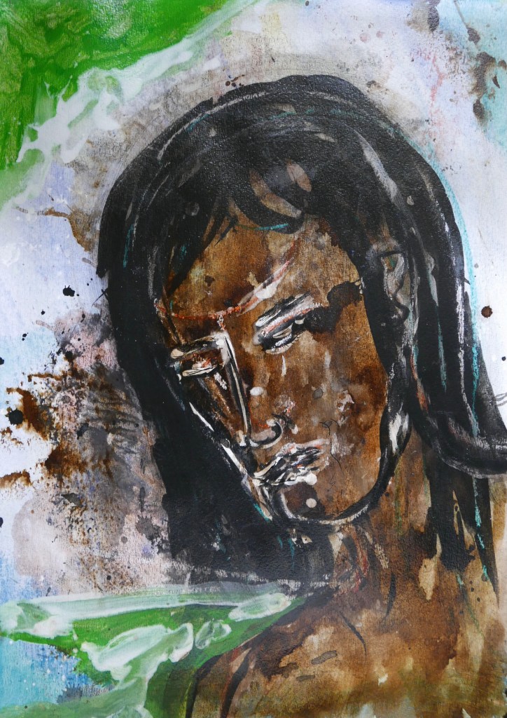 faces of Christ 2017 pigments, sumi-e on paper 48×36 cm