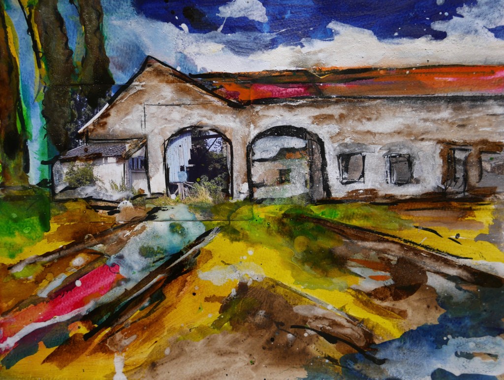 Draus ragt ein hohes Kreuz zum Himmel fahl.