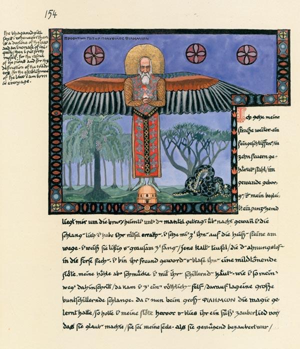 The serpent is an earthy soul, half daemonic, a spirit, and akin to the spirits of the dead. Thus too, like these, she swarmeth around in the things of earth, making us either to fear them or pricking us with intemperate desires. The serpent hath a nature like unto woman. She seeketh ever the company of the dead who are held by the spell of the earth, they who found not the way beyond that leadeth to singleness. The serpent is a whore. She wantoneth with the devil and with evil spirits; a mischievous tyrant and tormentor, ever seducing to evilest company. The white bird is a half-celestial soul of man. He bideth with the Mother, from time to time descending. The bird hath a nature like unto man, and is effective thought. He is chaste and solitary, a messenger of the Mother. He flieth high above earth. He commandeth singleness. He bringeth knowledge from the distant ones who went before and are perfected. He beareth our word above to the Mother. She intercedeth, she warneth, but against the gods she hath no power. She is a vessel of the sun. The serpent goeth below and with her cunning she lameth the phallic daemon, or else goadeth him on. She yieldeth up the too crafty thoughts of the earthy one, those thoughts which creep through every hole and cleave to all things with desirousness. The serpent, doubtless, willeth it not, yet she must be of use to us. She fleeth our grasp, thus showing us the way, which with our human wits we could not find.