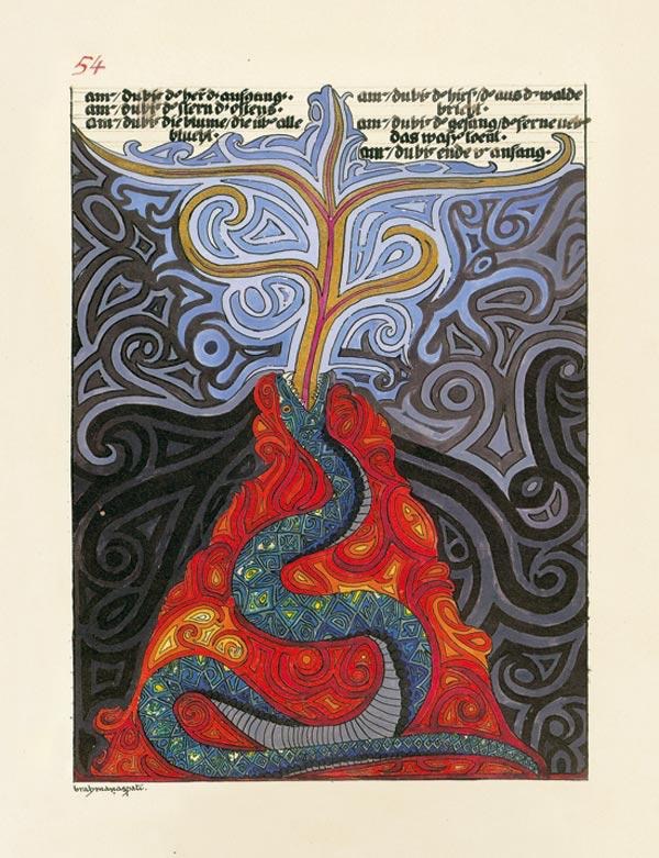 Beginning in late 1914, Jung began transcribing from the Black Book journals the draft manuscript of his legendary Red Book, the folio-sized leather bound illuminated volume he created to contain the formal record of his journey. Jung repeatedly stated that the visions and imaginative experiences recorded in the Red Book contained the nucleus of all his later works.
