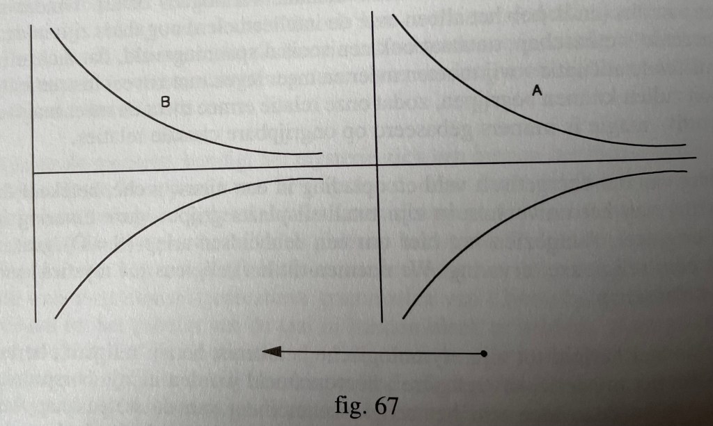 De energie die zich concentreert in de S=O ervaring deconcentreert bij overgang naar S↔︎O, als gevolg van de druk tegen de tamas-asymptote.3188 In de praktijk kent dit dat de bewustzijnsconcentratie in de directe ervaring afneemt als gevolg van analytische ingesteldheid. Deze laatste wordt tot aan de grens van haar vermogen gedreven, waardoor ze door de asymptote ‘tunnelt’.3189